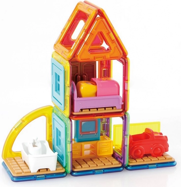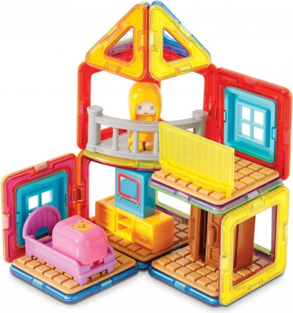 Lerne Magda kennen und sieh dir ihr Häuschen an. Das kreative magnetische Konstruktionsset ermöglicht das Zusammenbauen zahlreicher dreidimensionaler Objekte mithilfe zweidimensionaler Kunststoff-Polygonformen. Magformers fördert die Feinmotorik, regt die Kreativität an, lehrt Kinder Farben und grundlegende geometrische Formen. Die Abmessungen der Teile und die sorgfältig gewählten Formen gewährleisten maximale mögliche Sicherheit des Spielzeugs. Das Material, aus dem das Set hergestellt ist, erfüllt die strengsten hygienischen und gesundheitlichen Kriterien. Die Teile sind ausreichend groß, können nicht verschluckt werden und sind praktisch unzerbrechlich. Lieferumfang: