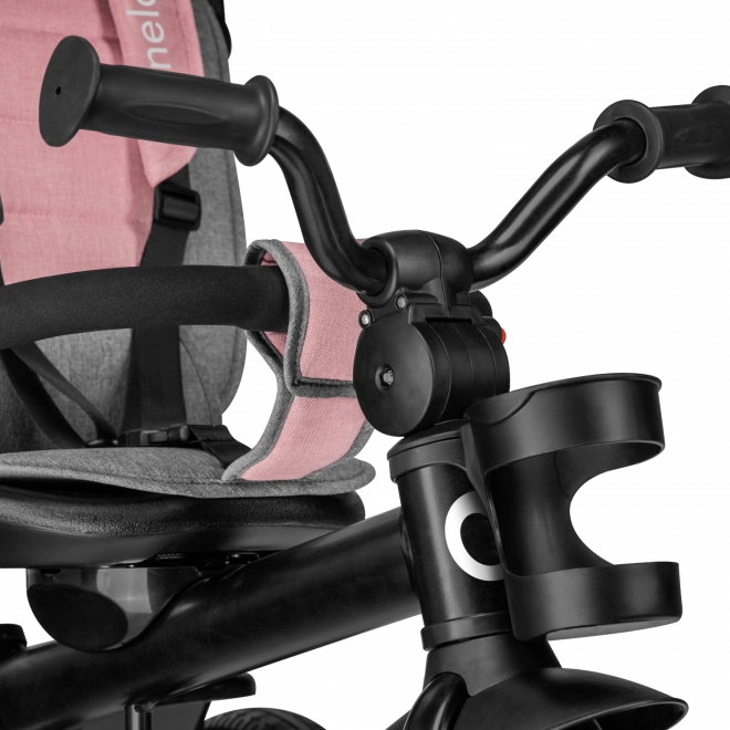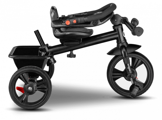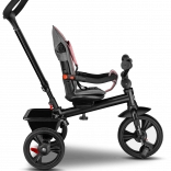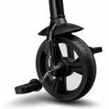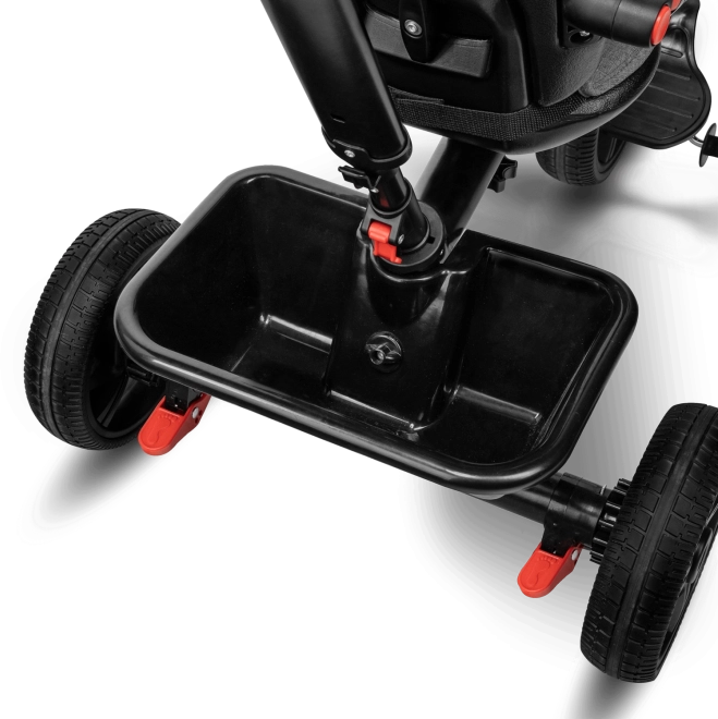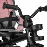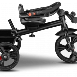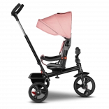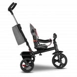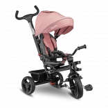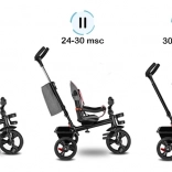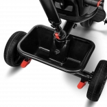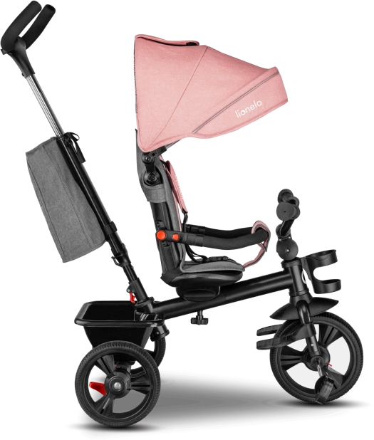 Für maximalen Komfort gibt es ein verstellbares Verdeck mit Sichtfenster, einen höhenverstellbaren Schiebegriff für Eltern sowie praktisches Zubehör – Korb, Tasche und Flaschenhalter. Die Sicherheit erhöhen 3-Punkt-Gurte, ein Schutzbügel, reflektierende Elemente und zwei unabhängige hintere Bremssysteme. Das Dreirad lässt sich leicht zu einer kompakten Größe zusammenklappen und dank des integrierten Tragegriffs bequem transportieren.