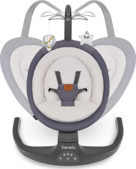 Die LIONELO Ralf Wippe ist für den Komfort von Kind und Eltern konzipiert. Das geringe Gewicht erleichtert den Transport, die zweistufige Rückenlehnenverstellung sorgt für die richtige Position zum Ausruhen und Spielen, und der abnehmbare Bezug kann problemlos bei 30 °C in der Maschine gewaschen werden. Das Schaukeln hilft dem Baby, sich sicher zu fühlen, unterstützt die Beruhigung und trägt positiv zur Entwicklung motorischer Fähigkeiten bei.