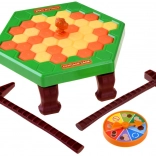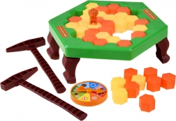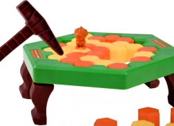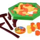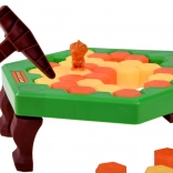 Das Spiel fördert strategisches Denken und Feinmotorik. In jeder Runde drehen Sie das Rad, das Ihnen angibt, welche und wie viele Würfel Sie entfernen müssen, ohne dass der Dinosaurier fällt.