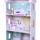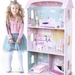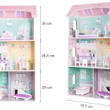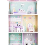 Das Puppenhaus hatdrei unabhängige Etagen mit vier Zimmern, jedes im anderen Stil und enthält Möbel, die beliebig bewegt werden können. Offene und geräumige Räume ermöglichen problemloses Spielen mit Puppen und laden die Kinder zum stundenlangen Spielen ein.