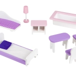Das Set enthält 8 Möbelstücke wie Tisch, Stühle, Bett, Schrank und andere, die beliebig bewegt werden können.