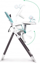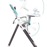 Mit nur einem Knopf lässt sich der Hochstuhl zusammen- und wieder aufklappen. Ideal für kleine Räume, einfach zu verstauen und perfekt für unterwegs.