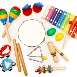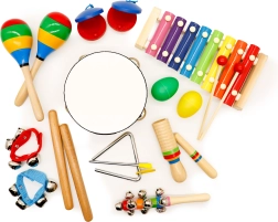 Dieses vielseitige Musikset von ECOTOYS bietet zehn beliebte Rhythmusinstrumente, mit denen die ganze Familie Spaß hat. Kinder entdecken neue Klänge, Melodien und Töne, entwickeln das Hörvermögen und lernen beim gemeinsamen Musizieren zusammenzuarbeiten.