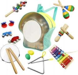 Das Set ist mit Fokus auf Sicherheit und Langlebigkeit gestaltet. Jedes Teil hat glatte Kanten und liegt gut in Kinderhänden. Der praktische transparente Rucksack hält alle Instrumente beisammen und ermöglicht es, sie überallhin mitzunehmen – zu Besuch, in den Kindergarten oder zu Auftritten.