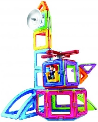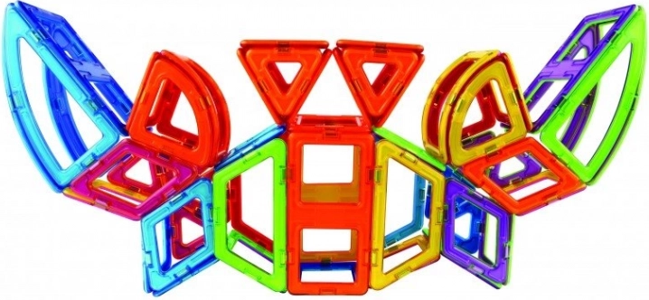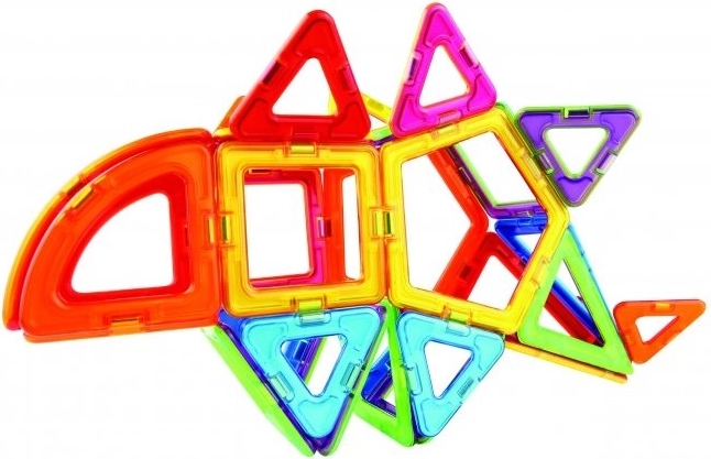 Set mit einer großen Anzahl an geraden und runden Bauteilen sowie Zubehör. Geeignet für größere architektonische Bauwerke, Autos, Maschinen, Karussells, Flugzeuge und ideal auch für Tier-, Dinosaurier- und Fantasy-Fans. Das Set ist zudem sehr reich an Zubehör für den Bau von Häusern und Schlössern, wie verschiedene Fenstertypen, Ziegel-Füllelemente, Balkone und Bäume. Zur Inspiration dient ein ausführlich gestaltetes Booklet. Anzahl der Teile: 115 20 Dreiecke, 30 Quadrate, 2 Fünfecke, 2 Sechsecke, 4 hohe Dreiecke, 4 doppelte Rechtecke, 1 dreifaches Rechteck, 4 Rauten, 4 Trapeze, 4 Kreissegmente, 4 lange Segmente, 1 Propeller, 2 einflügelige Fenster, 2 zweiflügelige Fenster, 2 Balkone, 6 Ziegelfüllelemente, 2 geteilte Fenster und 2 Bäume, 2 Figuren, 2 Doppelräder, 2 Bögen, 2 lange Bögen und weiteres Zubehör. Die kreative magnetische Konstruktionsspielzeugreihe Magformers ermöglicht das Bauen einer großen Anzahl dreidimensionaler Objekte mithilfe zweidimensionaler Kunststoff-Polygone. Magformers trainiert die Feinmotorik, fördert die Kreativität und bringt Kindern Farben und grundlegende geometrische Formen näher. Die Abmessungen der Teile und die durchdacht gewählten Formen gewährleisten maximale Spielzeugsicherheit. Das Material, aus dem die Bauteile hergestellt sind, erfüllt die strengsten hygienischen und gesundheitlichen Kriterien. Die Teile sind groß genug, können nicht verschluckt werden und sind praktisch unzerbrechlich. MAGFORMERS lässt sich sehr gut mit dem bekannten magnetischen Konstruktionsspielzeug Geomag kombinieren. Veranschaulichendes Video des magnetischen Konstruktionssets Magformers Mastermind