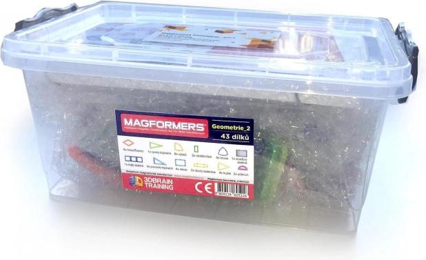 Das Set Magformers Geometrie: Ebene und Raum enthält 43 Teile zur Förderung von Geometrie und mathematischer Grundbildung in der Grundschule. Es ist für Kinder der 3. bis 5. Klasse bestimmt und fördert ihr Wissen in 2D- und 3D-Geometrie.