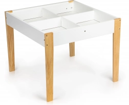 Nach dem Spielen können alle Spielzeuge einfach unter der abnehmbaren Tischplatte organisiert werden. Das Set enthält zwei bequeme Stühle mit Kiefernholzbeinen.