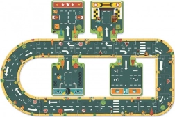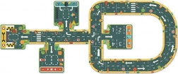 Verwandle den Boden in eine lebendige Stadt. Dank 21 miteinander verbindbaren Teilen können Kinder Geraden, Kurven und Kreuzungen entwerfen und mit ihren Lieblingsautos auf Tour gehen. Ein Spiel, das die Vorstellungskraft fördert und logische Planung lehrt.