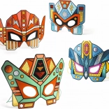 Dieses Kreativset ermöglicht es Kindern, auf einfache und unterhaltsame Weise 4 Super-Roboter-Masken zu gestalten. Dank der nummerierten Klebeflächen ziehst du nur das Schutzpapier ab und drückst die metallischen Folien auf – das Material haftet wie von Zauberhand und die Masken glänzen wunderschön.