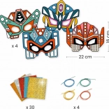 Enthält alles, was du brauchst: 4 vorgestanzte Masken mit selbstklebenden Zonen, 30 Bögen mit Metallic-Details, 4 Gummibänder und eine leicht verständliche Schritt-für-Schritt-Anleitung. Perfekt für organisiertes Basteln auf Feiern, in AGs oder für einen gemeinsamen Familiennachmittag.