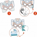 4 Masken, 30 Bögen mit Metallic-Details, Gummibänder und Anleitung – alles bereit zum Basteln und für Rollenspiele.