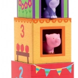 Dank der Illustrationen mit Tieren und Ziffern können die Kinder ihre motorischen Fähigkeiten entwickeln und lernen, Farben, Zahlen und Tiere zu erkennen. Das Spielzeug ist so konzipiert, dass es zur Erzählentwicklung und zum Rollenspiel anregt.