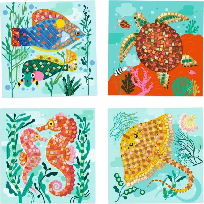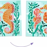 Dieses beeindruckende metallic Mosaik bringt Freude und Kreativität. Dank der 4 illustrierten Karten und 12 Bögen aus metallic Schaumstoffstickern tauchen Ihre kleinen Künstler in die faszinierende Unterwasserwelt ein. Die beiliegende farbige Broschüre bietet einfache und verständliche Anweisungen, die Schritt für Schritt kleine Projekte begleiten.