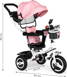 Das Dreirad ECOTOYS bietet eine weiche Rückenlehne und Sicherheitsgurte für den Komfort und die Sicherheit Ihres Kindes. Das drehbare Dach schützt vor Regen und Sonne.
