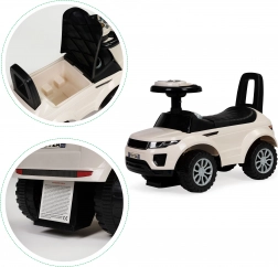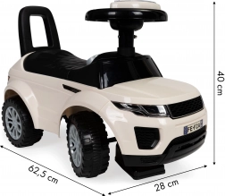 Die praktische Staubox unter dem Sitz fasst kleine Spielsachen oder Reise-Schätze. Spezielle Schutz-“Füße“ gegen Umkippen an Vorder- und Hinterachse verhindern ein Kippen beim Anfahren und Anhalten. Das Rutschauto erfüllt die Normen CE, EN71 und hat eine Tragfähigkeit von 27 kg – es wächst also mit Ihrem Kind mit.