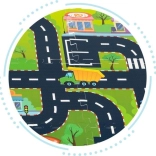 Detailreicher Druck von Straßen, Kreuzungen und Gebäuden fördert die Vorstellungskraft und entwickelt Motorik sowie Raumwahrnehmung der Kinder.