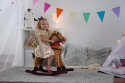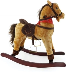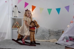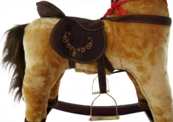 Dieses braune Schaukelpferd ist aus hochwertigem, angenehm weichem Plüsch gefertigt, der zum Streicheln und sicheren Spielen einlädt. Die realistische Ausführung mit Zaumzeug, Sattel und Steigbügeln fördert die kindliche Fantasie und verwandelt jedes Zimmer in eine kleine Ranch.