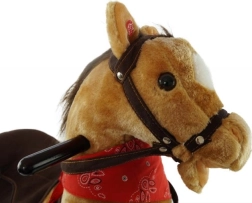 Die interaktive Bedienung ist einfach – drücke ein Ohr oder das andere, und das Pferd meldet sich mit typischem Wiehern oder Trabgeräuschen. Robuste hölzerne Kufen und Griffe geben Sicherheit beim Schaukeln, während das rote Halstuch dem Spielzeug Stil verleiht.