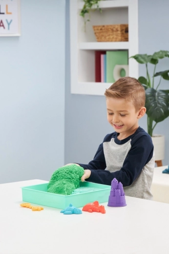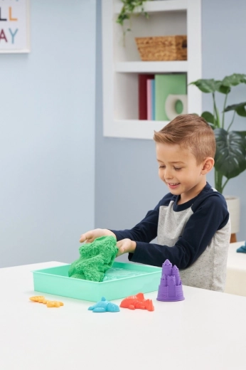 Enthalten sind 454 g grüner Sand, Formen für Meerestiere und eine Burg sowie eine Schaufel zum Graben, Schöpfen und Streuen. Der Sand besteht aus natürlichem Sand und ist eine tolle Alternative zu Knetmasse – fördert Feinmotorik, Kreativität und selbstständiges Spielen.