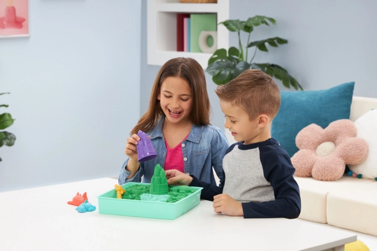 Dieses kreative Set mit originalem Kinetic Sand bringt den Sandkasten direkt auf den Tisch. Der Sand fließt durch die Finger, ist hypnotisch angenehm anzufassen und hält dabei hervorragend die Form. Dank des Tabletts bleibt das Spiel übersichtlich und aufgeräumt, sodass Kinder das sensorische Gestalten das ganze Jahr über genießen können.