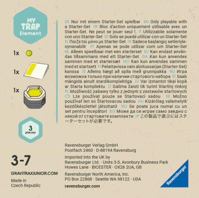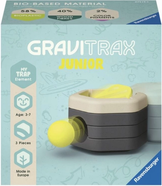 Erweitere deine GRAVITRAX JUNIOR Kugelbahn um das Zubehör Falle, das einen magischen Durchbruch erzeugt – die Kugel wird verschluckt und eine Ebene tiefer wieder freigegeben. Dank des Holz-Biokunststoffs ist es sicher und robust für Kinder ab 3 Jahren und bringt mehr Spannung und endlosen Spielspaß beim kreativen Bauen thematischer Welten.