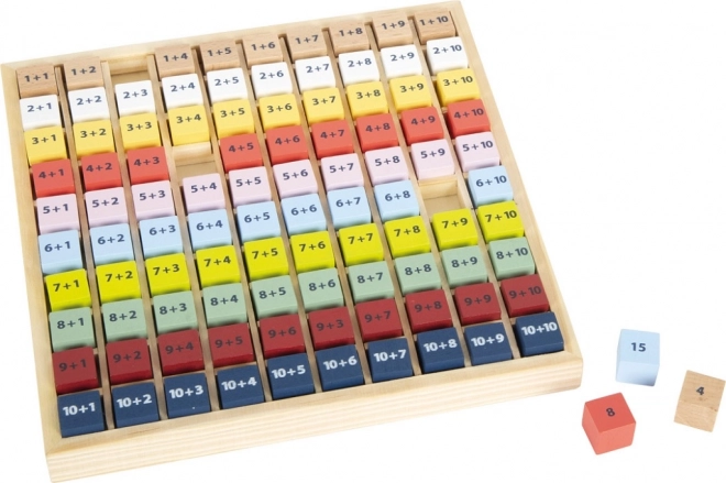 Jeder Würfel enthält eine einfache Additionsaufgabe und auf der Rückseite die richtige Antwort. Kinder können so selbstständig arbeiten, Ergebnisse überprüfen und ihr Selbstvertrauen in Mathematik stärken. Die Tafel besteht aus strapazierfähigem 100% FSC®-Holz, das umweltfreundlich und angenehm anzufassen ist.