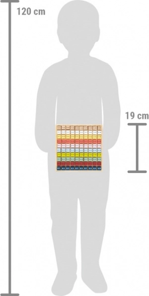 Diese hölzerne Lerntafel unterstützt frühe mathematische Kompetenzen auf spielerische Weise. Kinder üben die Grundlagen der Arithmetik, das Rechnen bis 20 und entwickeln gleichzeitig Feinmotorik, indem sie die Würfel in die vorgesehenen Fächer einsetzen. Dank der klaren Farbgestaltung ist das Lernen übersichtlich und motivierend.