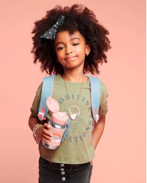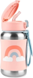 Edelstahl-Wasserflasche mit tollen Mustern, die kleinen Persönlichkeiten Glanz verleihen und Getränke unterwegs kühl halten. Der ausklappbare Deckel hält den flexiblen Strohhalm sauber, und die rutschfeste Silikonhülle schützt kleine Hände vor der Kälte der Oberfläche.