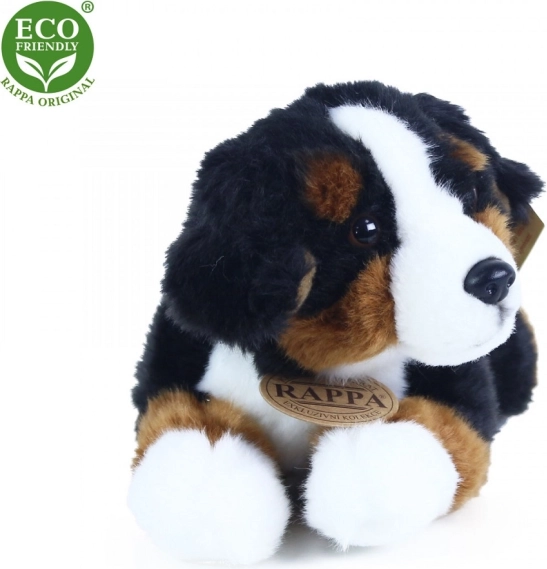 Dieser liegende Berner Sennenhund begeistert schon beim ersten Anfassen. Samtig-weicher Plüsch, präzise Nähte und realistische Details fangen den Charakter der beliebten Rasse originalgetreu ein. Dank der sicheren, recycelten Füllung ist das Spielzeug umweltfreundlich und auch für die Kleinsten geeignet.