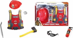 Werde zum Helden mit dem Feuerwehr-Set für Kinder, das alles für ein abwechslungsreiches Feuerwehrrollenspiel enthält: Weste, Helm, Axt, Schutzbrille, Feuerlöscher, Brecheisen und Abzeichen.