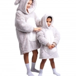 Großer Kapuzenpullover in Form eines Tieres, der als kuschelige Decke aus weichem Sherpa-Fleece dient. Bietet maximalen Komfort für Kinder von 3 bis 6 Jahren mit einer großen Vordertasche zum Aufwärmen der Hände.