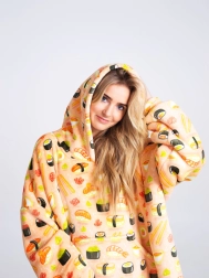 Der witzige Print sorgt für Pepp, und die große Kängurutasche wärmt die Hände. Die Kapuze schützt vor Kälte – drinnen wie draußen.