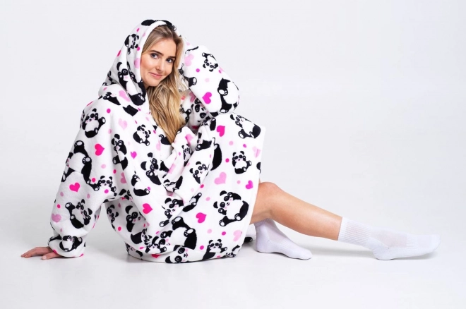 Dieser Hoodie und diese Decke in einem sind für täglichen Komfort konzipiert. Der Oversize-Schnitt bietet Bewegungsfreiheit, während die weichen Materialien wohlig wärmen. Das stylische Panda-Design verleiht einen verspielten Look und macht den Hoodie zu einem tollen Geschenk für Frauen und Männer.