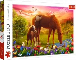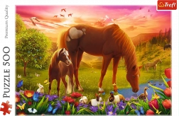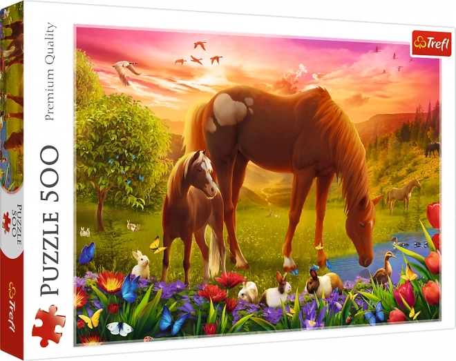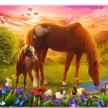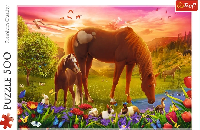Genießen Sie ruhige Momente mit einem Puzzle, das anmutige Pferde auf einer grünen Wiese zeigt. Mit 500 Teilen bietet es eine angenehme Herausforderung für Einsteiger und Fortgeschrittene, und das fertige Bild mit den Maßen 480 × 340 mm eignet sich hervorragend zum Einrahmen.