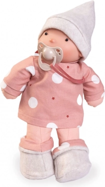 Diese zarte Puppe wurde speziell für Babys und Kleinkinder entwickelt. Sie kombiniert umweltfreundliche Materialien mit sicherer Verarbeitung: Körper und Gliedmaßen aus Bio-Baumwolle, ein realistischer Kopf aus 100 % Silikon und eine Füllung aus weicher, recycelter PET-Faser. Enthalten ist ein magnetischer Schnuller aus bio-organischen Materialien mit natürlichen Pigmenten.
