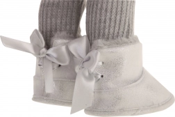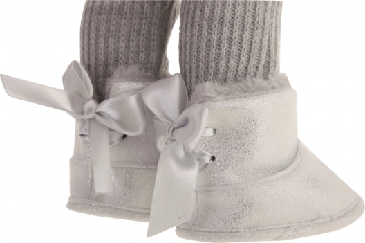 Erweitere die Garderobe deiner Puppe um elegante silberne Stiefelchen, die perfekt zu Puppen mit einer Größe von 40–52 cm passen. Hochwertige Verarbeitung und Handarbeit sorgen für eine schöne Optik und bequemes An- und Ausziehen.