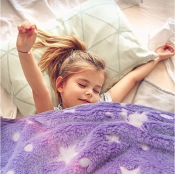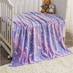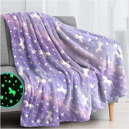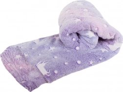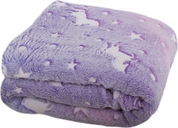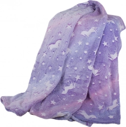 Diese kuschelweiche Decke in Violetttönen mit Einhörnern und Sternchen ist ideal zum Relaxen auf dem Sofa, fürs Kinderzimmer oder als wärmende Tagesdecke. Die fluoreszierenden Muster leuchten im Dunkeln, nachdem sie Licht aufgenommen haben, schaffen eine gemütliche Atmosphäre und bringen einen Hauch von Zauber in den Abend.