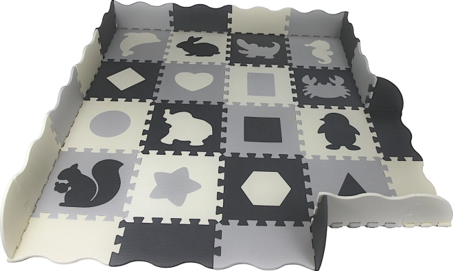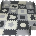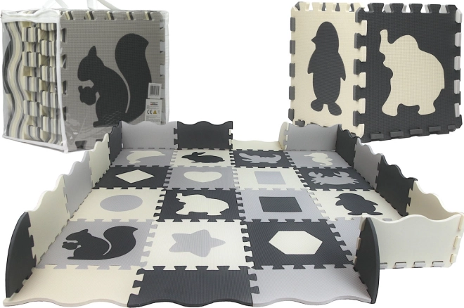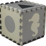 Diese grau‑cremefarbene Schaumstoff-Puzzlematte verwandelt den Boden in einen gemütlichen und sicheren Spielbereich. Herausnehmbare Mittelteile mit Tieren und geometrischen Formen fördern die Feinmotorik und Lernen durch Spiel. Dank der Stärke von 0,9 cm dämpft sie Stöße und Geräusche und isoliert gegen Kälte.