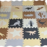 Diese EVA-Schaumstoffmatte mit Dinosauriern verwandelt den Boden in einen sicheren und spannenden Spielbereich. Dank des extra weichen Materials und der Stärke von 0,9 cm schützt sie vor Kälte, dämpft Stürze und Geräusche und sorgt für Komfort beim Spielen. Neutrale Farben fügen sich perfekt in moderne Interieurs ein.