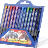Das Set ist in einer verschließbaren Kunststoffbox untergebracht, die bei der Verwendung zugleich als praktischer Ständer für eine übersichtliche Aufbewahrung dient. Ideal für Schulprojekte, kreatives Arbeiten zu Hause und den täglichen Bürogebrauch.