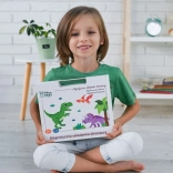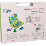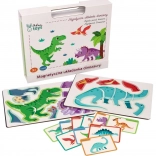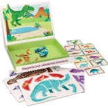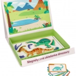 Lieferumfang: Magnettafel 26 × 19 cm, 10 farbige Karten mit Abbildungen und Namen der Dinosaurier sowie 51 magnetische Teile zum Zusammenstellen. Das Produkt besteht aus sicheren Materialien und erfüllt die CE-Normen.
