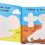 Das Buch hat ein kompaktes Format von 15 × 15 cm, 6 leicht umblätterbare Seiten und besteht aus weichem, abwischbarem Kunststoff für sicheres Spielen in der Wanne. Perfekt als Geschenk für kleine Dinosaurier-Fans und zur Förderung der Feinmotorik und des visuellen Wahrnehmungsvermögens.