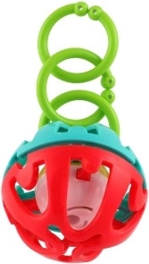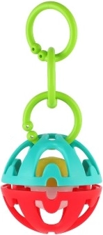 Entdecken Sie die lustige Rassel in Kugelform, die mit leuchtenden Farben und einem durchdachten Design begeistert. Beim Schütteln entsteht ein angenehmes Rasseln, das das Gehör stimuliert, während verschiedene Texturen und Formen den Tastsinn und die Hand-Auge-Koordination fördern. Dank der praktischen Öse kann das Spielzeug leicht am Kinderwagen, Autositz oder Spielbogen befestigt werden.