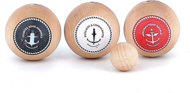 Das Set ist aus massivem, lackiertem Holz gefertigt und sorgt für eine angenehme Haptik, lange Lebensdauer und sicheres Spielen für Kinder ab 5 Jahren. Es entstand in Zusammenarbeit mit der französischen Marine und wurde umweltschonend hergestellt – die ideale Wahl für verantwortungsbewusstes Spielen.