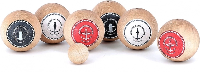 Entdecken Sie den Zauber eines traditionellen Spiels mit maritimem Flair. Dieses hochwertige Pétanque-Holzset mit Motiv der französischen Marine vereint zeitloses Design, robuste Materialien und Spaß für die ganze Familie. Dank des praktischen Stoffbeutels nehmen Sie es mühelos in den Park, in den Garten oder mit in den Urlaub.