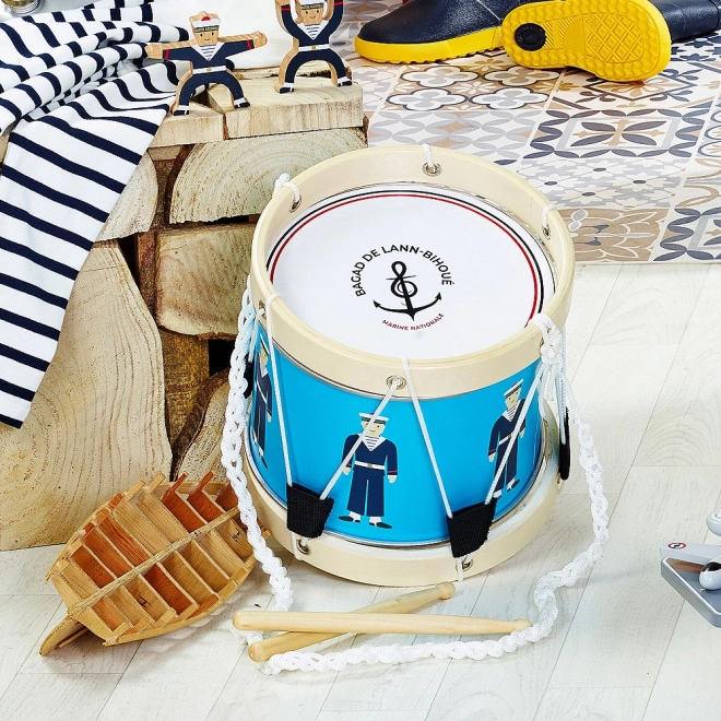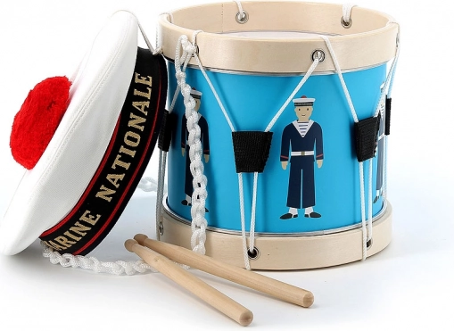 Diese Trommel entstand in Zusammenarbeit mit der französischen Marine, was sich in authentischen Details und der hochwertigen Verarbeitung widerspiegelt. Sie ist für Kinder ab 3 Jahren geeignet und wird dank des angenehmen Klangs und der ergonomischen Schlägel sowohl Einsteiger als auch kleine Musikfans begeistern.