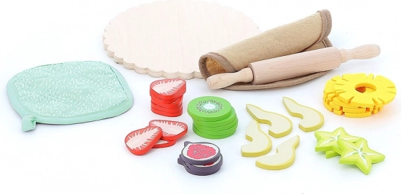 Dieses hochwertige Set aus Holz und Stoff verwandelt jede Kinderküche in eine kleine Konditorei. Kinder trainieren Feinmotorik, Hand-Auge-Koordination und Kreativität beim Dekorieren des Kuchens mit bunten Obstscheiben. Das Spiel eignet sich auch wunderbar für gemeinsame Momente mit Geschwistern und Freundinnen/Freunden.