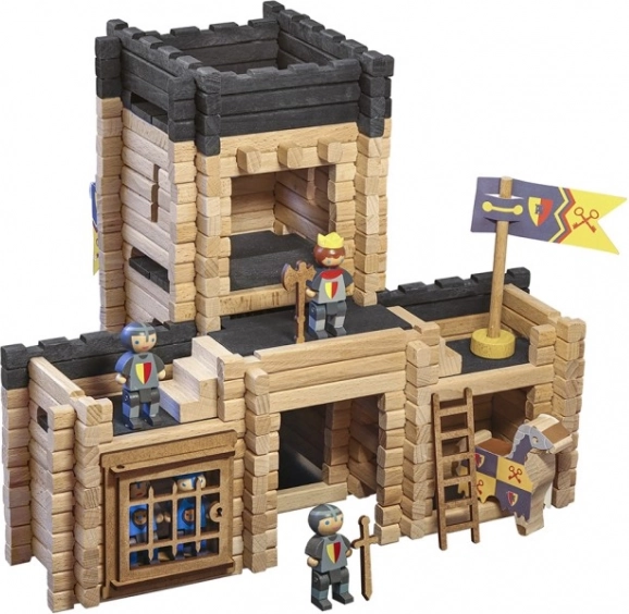 Dieser hochwertige Holz-Baukasten von JEUJURA fördert Feinmotorik, Kreativität und logisches Denken. Die Teile aus massivem Buchen- und Kiefernholz greifen einfach ineinander, sodass Kinder mühelos eine Festung mit Details wie Zugbrücke, Gefängnis und Wehrgängen bauen. Das Spiel wird durch Ritterfiguren, Pferde und ein Katapult für actionreiche Geschichten ergänzt.