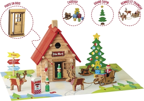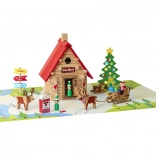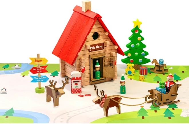 Dieses Themen-Set bringt die Atmosphäre des Nordpols direkt ins Kinderzimmer. Bauen Sie Santas Hütte, platzieren Sie die Wichtel-Figuren, spannen Sie die Rentiere vor den Schlitten und schmücken Sie die Szene mit einem Weihnachtsbaum samt Geschenken. Dank passgenauer Holzteile macht das Bauen Spaß und fördert Feinmotorik, Geduld und Kreativität.